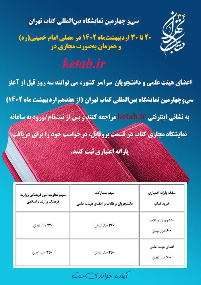 به اطلاع دانشگاهیان می رساند سی و چهارمین نمایشگاه بین المللی کتاب تهران با شعار "آینده خواندنی است" از 20 تا