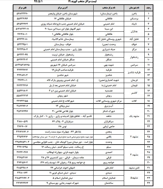 افزایش تعداد مراکز خدمات جامع سلامت ویژه کرونا درمناطق زیر پوشش دانشگاه علوم پزشکی مشهد
