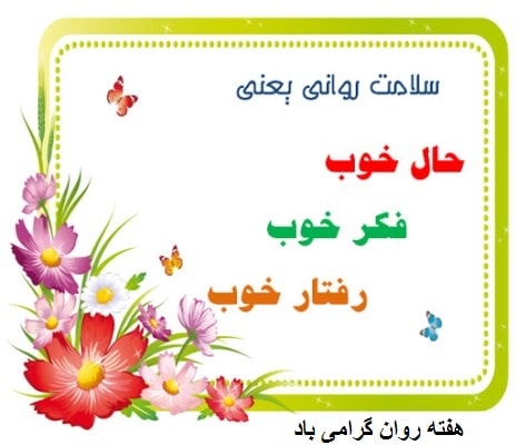 18 لغایت 25 مهرماه هفته سلامت روان و شعار این هفته "سلامت روان برای همه سرمایه گذاری بیشتر- دسترسی بیشتر، برای همه و همه جا" تعیین شده است.