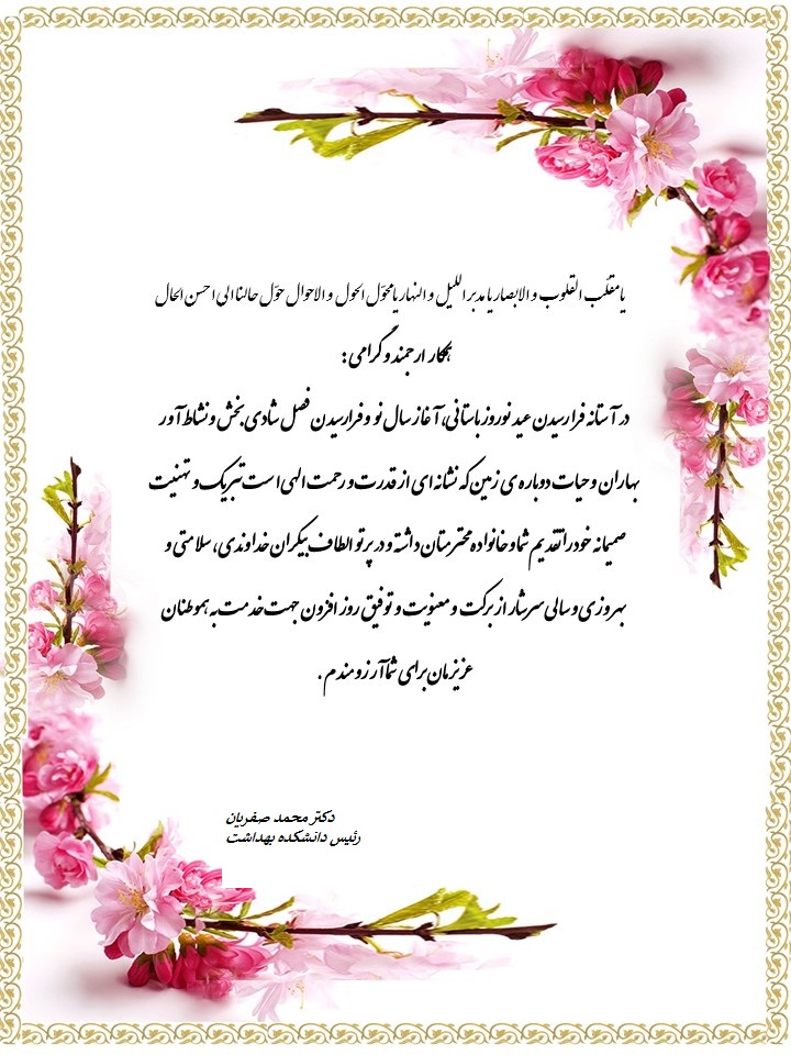 پیام تبریک ریاست دانشکده بهداشت به مناسبت عید نوروز