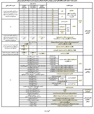 بند2- در مقاطع کارشناسی ارشد و دکتری و سالهای دوم تا چهارم مقطع کارشناسی، تعیین افراد واجد شرایط بر اساس امتیاز کسب شده از جدول یک صورت می گیرد. در این زمینه توجه به این نکته حایز اهمیت است که افرادی واجد شرایط نخبگی تلقی می شوند که حداقل 100 امتیاز از جدول یک کسب کنند.