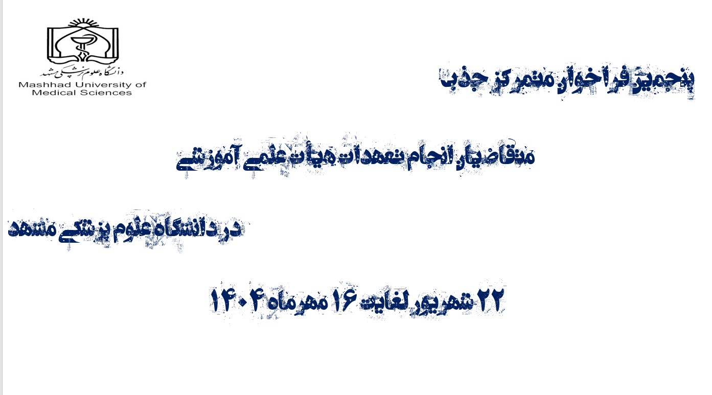 پنجمین فراخوان متمرکز جذب متقاضیان انجام تعهدات هیأت علمی آموزشی در دانشگاه علوم پزشکی مشهد
