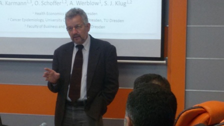 دکتر الکساندر کارمان استاد گروه اقتصاد دانشگاه درسدن ،در این نشست آموزشی که در تالار کیخسروی بیمارستان امام رضا (ع )برگزار شد،مدل های پیش بینی اقتصادی برای بحث عوامل موثر بر هزینه اثر بخشی و کارایی مراکز مراقبت از سالمندان و عوامل موثر بر پیش بینی مرگ و میر ناشی از بیماری های مزمن را بیان کرد. و در ادامه دکتر نخعی زاده استاد گروه اقتصاد و مدیریت از دانشگاه کارلسروهه نیز به مفاهیم پایه داده کاوی در نظام سلامت پرداخت.