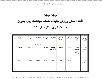 به گزارش روابط عمومی دانشکده ، کلاس ورزشی پیلاتس ویژه همکاران بانو در روز های زوج ساعت 7:30 الی 8:30 برگزار می شود .