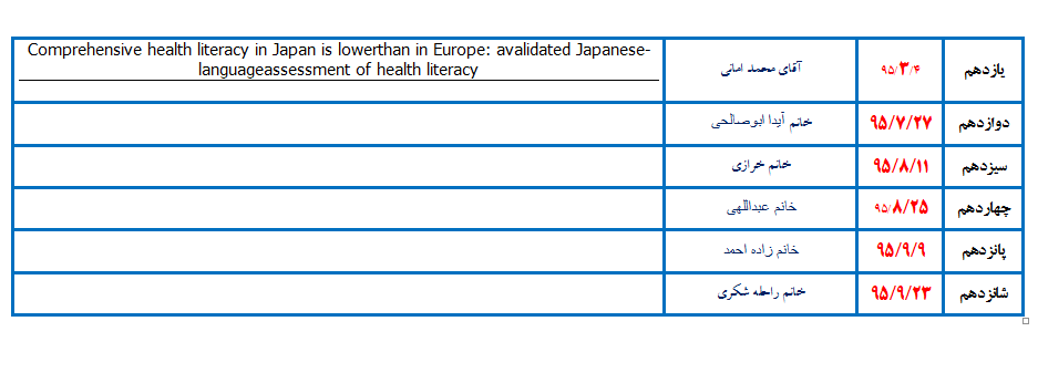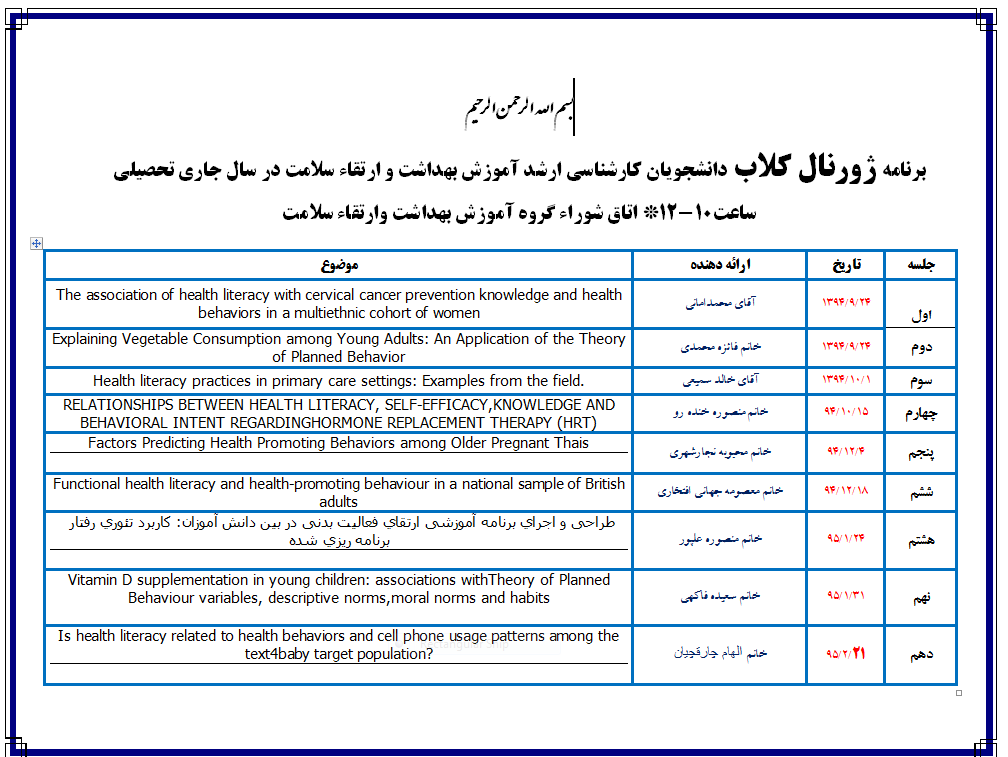 برنامه کارگاه های ژورنال کلاب گروه آموزش بهداشت و ارتقا سلامت برنامه کارگاه ژورنال کلاب گروه آموزش بهداشت و ارتقا سلامت