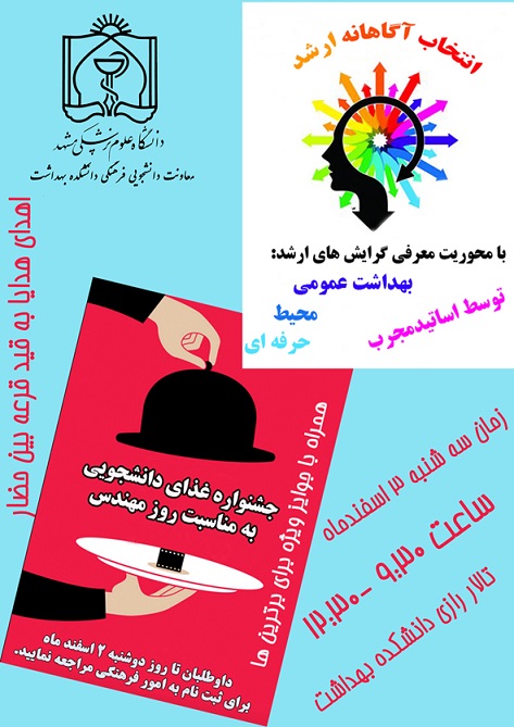 به گزارش وبدای دانشکده ، همایش انتخاب آگاهانه ویژه دانشجویان در روز سه شنبه 95/12/3 ساعت 9:30در تالار رازی دانشکده برگزار می شود . گفتنی است این همایش با محوریت رشته های مهندسی بهداشت محیط و حرفه و بهداشت عمومی با راهنمایی اساتید مربوطه ،همراه با جشنواره غذا برگزار می گردد.
