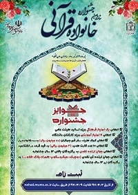 آغاز ثبت نام در شانزدهمین جشنواره خانواده قرآنی از 2/4/97 لغایت 9/4/97 آغاز گردید .